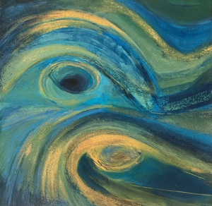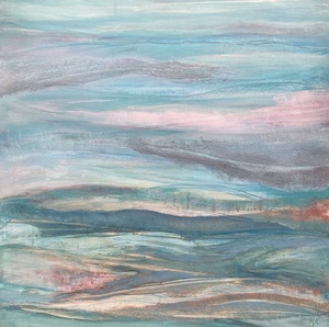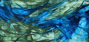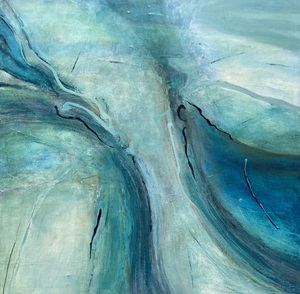 2024Abstract, blauwgroen schilderij, gelaagd.